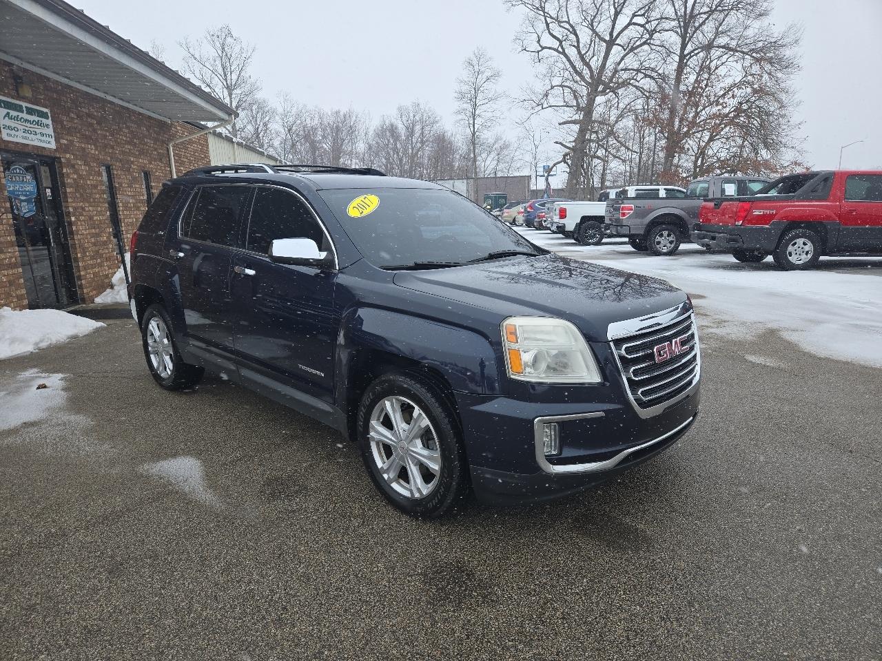 The 2017 GMC Terrain SLT offers the perfect blend of comfort, style, and everyday reliability. Finished in a sharp blue exterior with premium leather interior, this Terrain delivers a smooth ride with its automatic transmission and efficient performance. Front Wheel Drive provides confident handling in all seasons, making it a great choice for families, commuters, and SUV shoppers searching for value. Located in Fort Wayne at Three Rivers Automotive, this well-kept Terrain SLT is ideal for buyers looking for a clean, dependable SUV. Enjoy features like heated leather seats, backup camera, Bluetooth, and a spacious cabin designed for comfort. Whether you're shopping in Fort Wayne, New Haven, Auburn, Columbia City, Huntington, Decatur, or anywhere within 50 miles, this Terrain is ready to impress. Financing options are available for ALL credit types-good, great, rebuilding, or starting fresh.